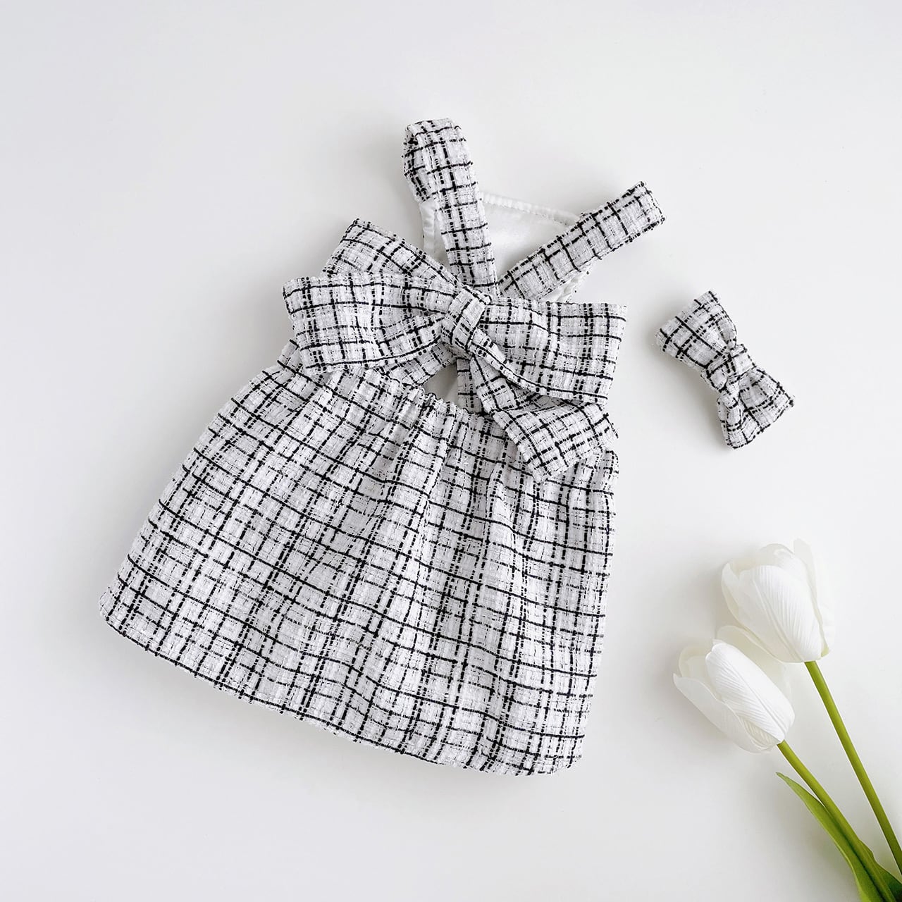 背中の大きなリボンが印象的なワンピースと