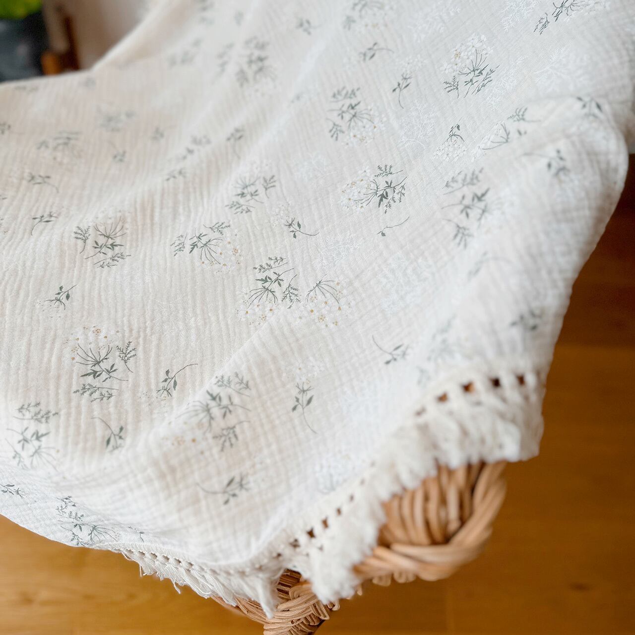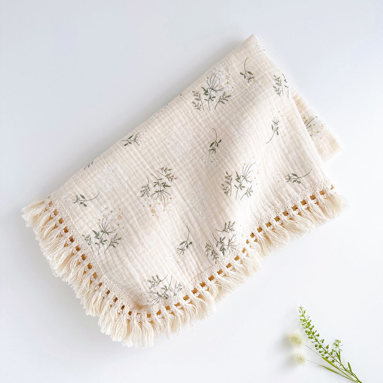 ナチュラルな花柄にフリンジエッジがおしゃれな